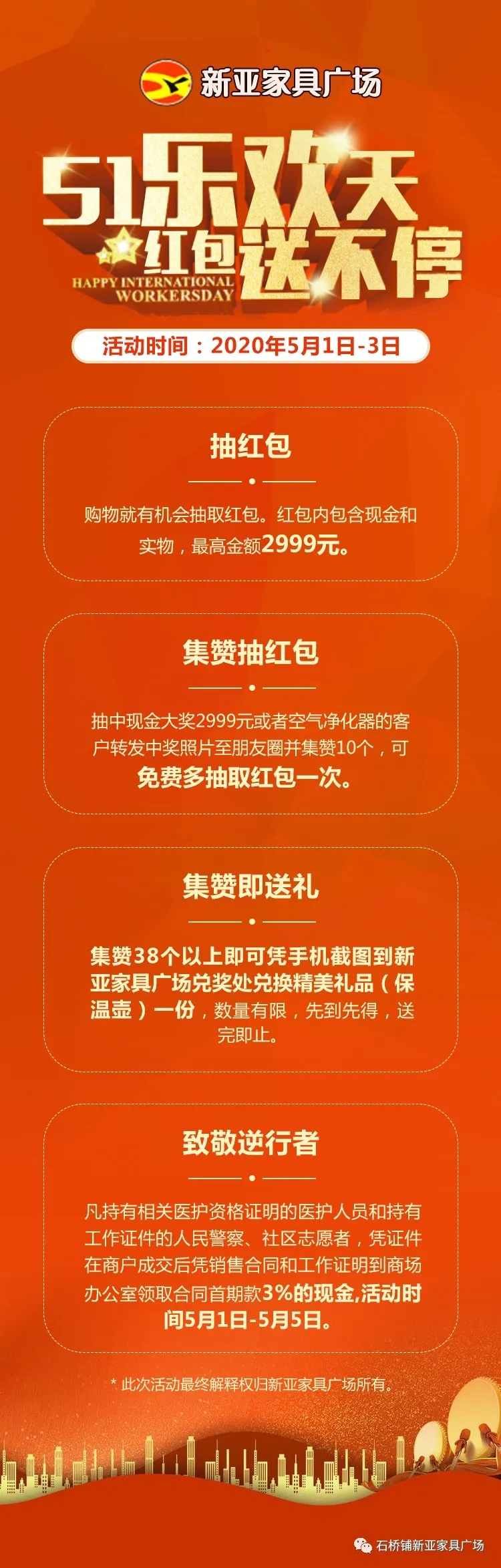 新亚家具广场五一大促派送大礼了。