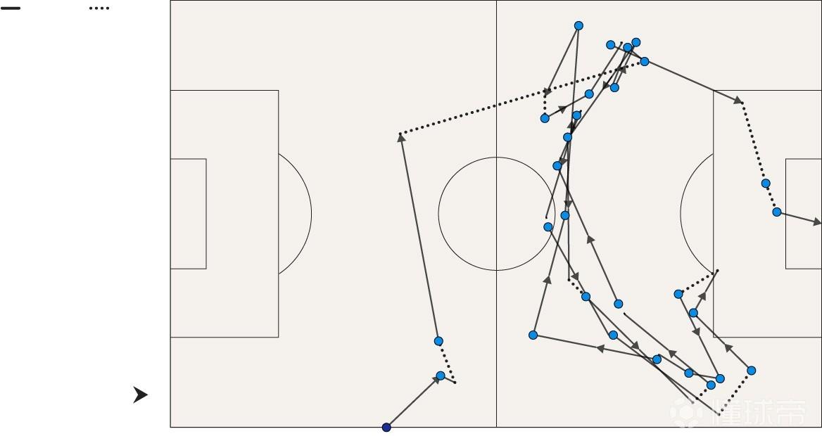 将这与巴黎圣日耳曼的统治力和观赏性形成对比。在一些观察者看来,克瓦拉茨赫利亚是我们这个时代最接近贝斯特的球员。他有那样的步态。他有那样的胡子。他还有那样的脚法——正如他在那个由27脚传递完成的进球中所展示的那样(如下所示),为德西雷-杜埃的首开纪录锦上添花。